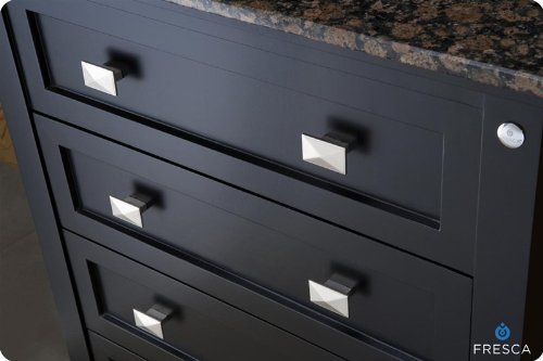 The Fresca Wilson Classic Single Sink Bathroom Vanity is a small bath/powder room showstopper for its rich black matte finish and solid Aspen wood frame and also for its accompanying rectangular brushed nickel hardware. Couple these striking design elements with a travertine stone countertop in creamy honey, or flecked Baltic brown or deep black galaxy granite. Three deep-set drawers provide excellent storage. Add in the Wilson Classic Mirror for an ensemble set, sold separately.