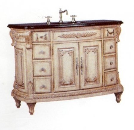 Ambella Home Lady Carey Bathroom Sink Vanity This comely sink chest is completely hand crafted of solid mahogany hardwood in an antique parchment distressed