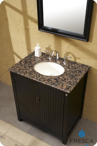 The Fresca Lynx Classic Single Sink Bathroom Vanity has wide appeal for a small bath or powder room. The double door panels have vertical lines crafted into a solid Aspen wood frame. The traditional black wood finish pairs well with antique hardware and your choice of either flecked Baltic brown or solid black galaxy granite countertops. Storage-wise, this bathroom vanity provides two interior shelves for towels and necessities. Choose the Lynx Classic Mirror for a matched set (sold separately).