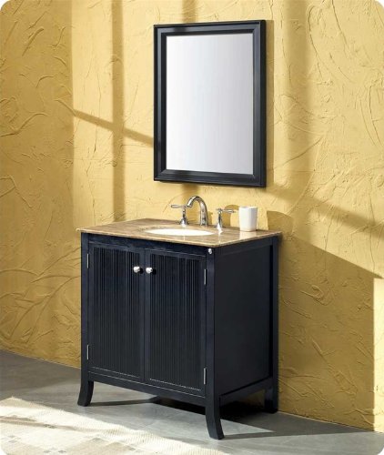 The Fresca Thames Traditional Single Sink Bathroom Vanity is a perfect contemporary aesthetic for a small to medium size bathroom. Choose from a flecked Baltic brown or rich black galaxy granite; or creamy honey travertine stone countertop. The matte black finish of the solid Aspen wood cabinet frame has a striking vertical ribbed architectural detail built into the door panels. A set of brushed nickel door pulls finishes the look. Two interior shelves provide ample storage. Add the Thames traditional mirror for a full ensemble, sold separately.