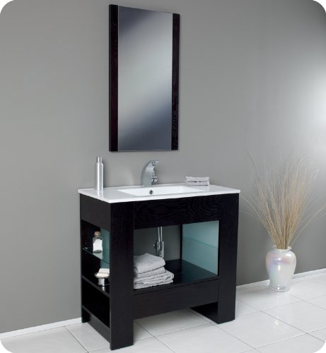 FVN3005WG Finish / Faucet Style: Chrome / Tolerus Features: -Single Hole Faucet Mount.-Materials: Wenge Wood, Ceramic Countertop/Sink. Includes: -P-trap, Faucet, Pop-Up Drain and Installation Hardware Included. Dimensions: -Dimensions of Vanity: 35.5'' W X 18.25'' D X 33.5'' H.-Dimensions of Mirror: 19.75'' W X 36.25'' H For more information on this product please view the Sheet below: Installation sheet.