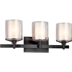 B1713FR Features: -Three light bath vanity.-Wall mount.-Clear outer / ribbed glass.-UL listed.-cUL listed. Construction: -Hand worked wrought iron construction. Color/Finish: -French iron finish. Specifications: -Accommodates (3) 60W candelabra bulb. Assembly Instructions: -Assembly required. Dimensions: -Overall dimensions: 8.75'' H x 22'' W. Collection: -Arcadia collection.