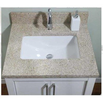 E2522UTB Finish: Uba Tuba, Size: 25" x 22" for 24" Vanities, Bowl Configuration: Biscuit Bowl Features: -Granite vanity top.-Eased square edge.-8'' Faucet drill.-Underside of top has four female screws embedded.-Four male screws and hanging clips ere provided for easy bowl installation.-No bowl.-Rectangular bowl in biscuit.-Rectangular bowl in white. Includes: -Loose 4'' backsplash included. Dimensions: -Granite thickness: 1.25''.-Rectangular bowl cut out dimensions: 18'' W x 12'' D.-25'' Vanity top dimensions: 25'' W x 22'' D.-31'' Vanity top dimensions: 31'' W x 22'' D.-37'' Vanity top dimensions: 37'' W x 22'' D. Collection: -Euro collection.