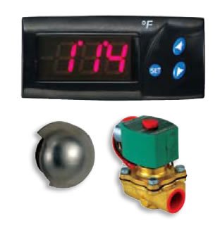 Commerical Digital Control Package with 1 Solenoid Valves100 degree - 120 degree Fahrenheit temperature range In room temperature sensor with sensor guard Electronic temperature control Factory installed with panel mount Mounting plate for optional remote installation Integrated in room high temperature control One (1) DIGITAL1 Temperature control One (1) DIGITAL1 Sensor with 30 feet sensor cable One (1) 3 4" NPT Polished Chrome steam head with polycarbonate cover One (1) 3 4" solenoid valveAC Voltage: 120V