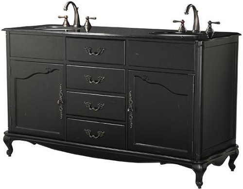 The Provence Double Sink Vanity is crafted of poplar wood and maple veneer in your choice of finish with carved detailing. The sink top is granite, and the cabinet includes four drawers for storage and scrolled metal pulls. Crafted of poplar wood, MDF and maple veneer. Part of the Provence Collection. Actual size is 35Hx62Wx22D